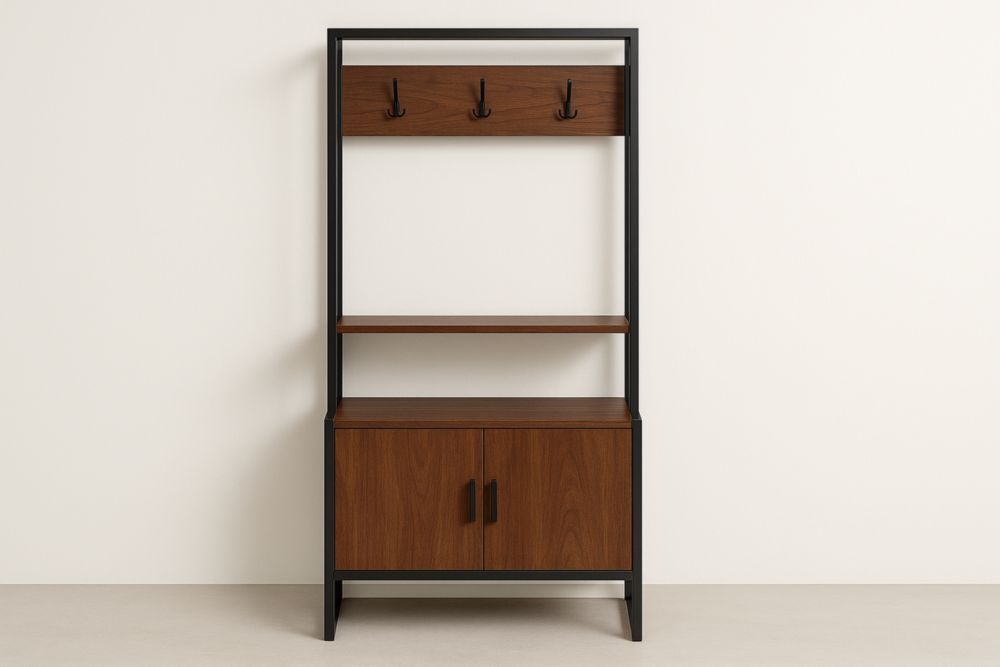 Appendiabiti in Legno e Metallo con Mobiletto Marrone/Nero