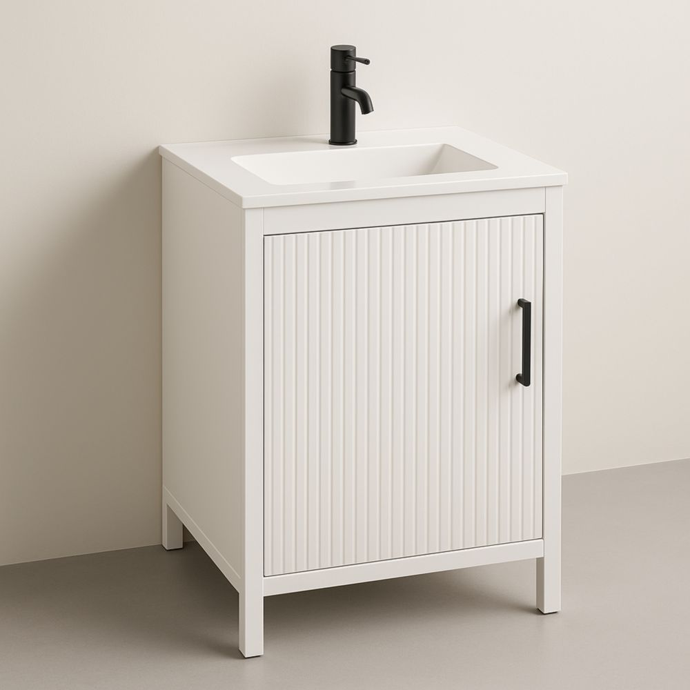 Mobile lavabo bagno legno MDF bianco con lavandino in ceramica